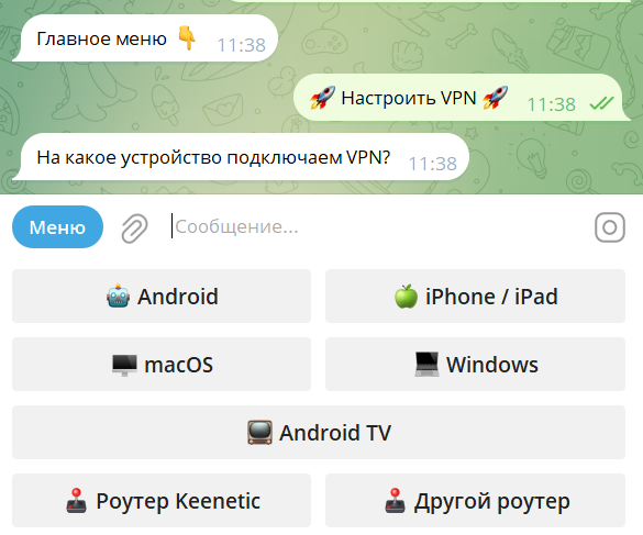 • 5)Далее следуете инструкции из бота, которую он вам предоставит для вашего устройства.