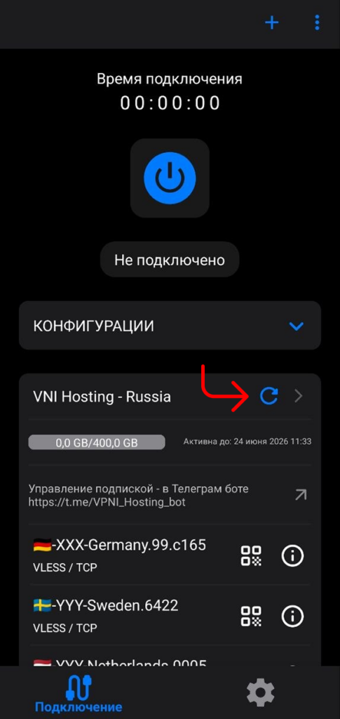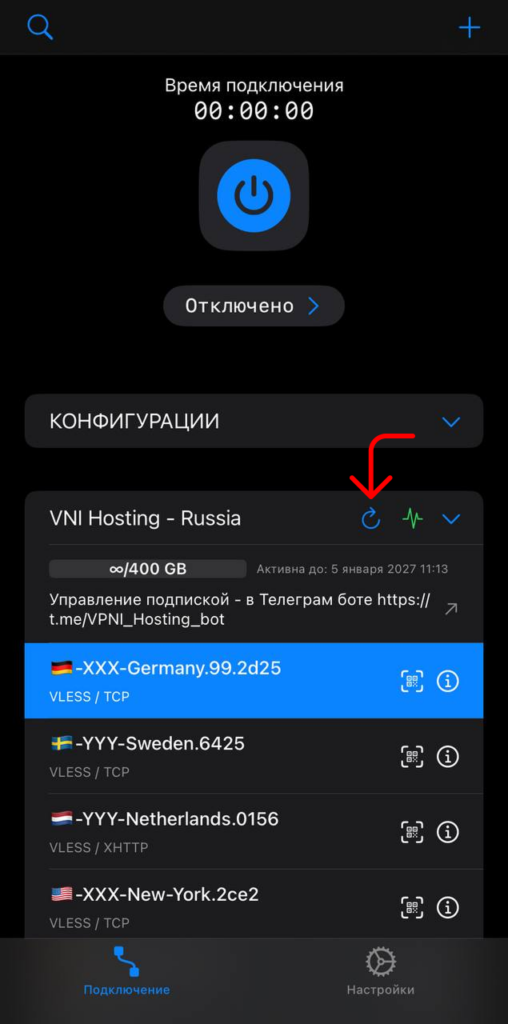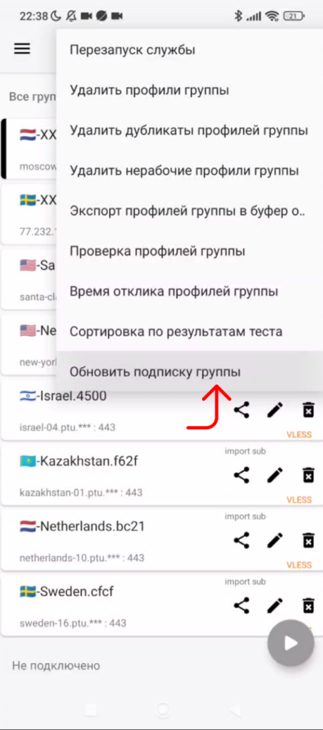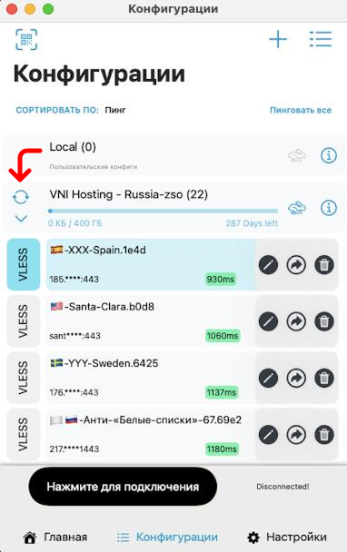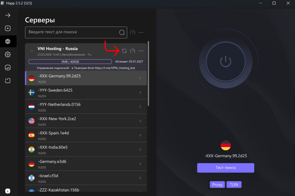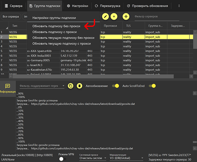 - V2RayN на Windows: Группа подписки -> Обновить подписку без прокси.